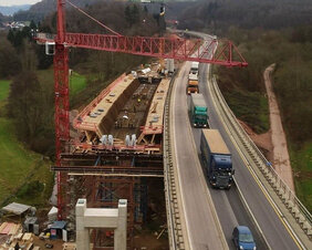 Im Zuge des Endausbaus der BAB 8 wurde die Errichtung eines zweiten Überbaus neben dem Bestandsüberbau – Bauwerk 1491-1 – einschließlich Straßenanbindung erforderlich. Das Bauwerk mit einer Länge von 300 m und einer Höhe von 20 m wurde als Durchlaufträger über 8 Felder konzipiert und als einzelliger Spannbetonhohlkasten ausgebildet.