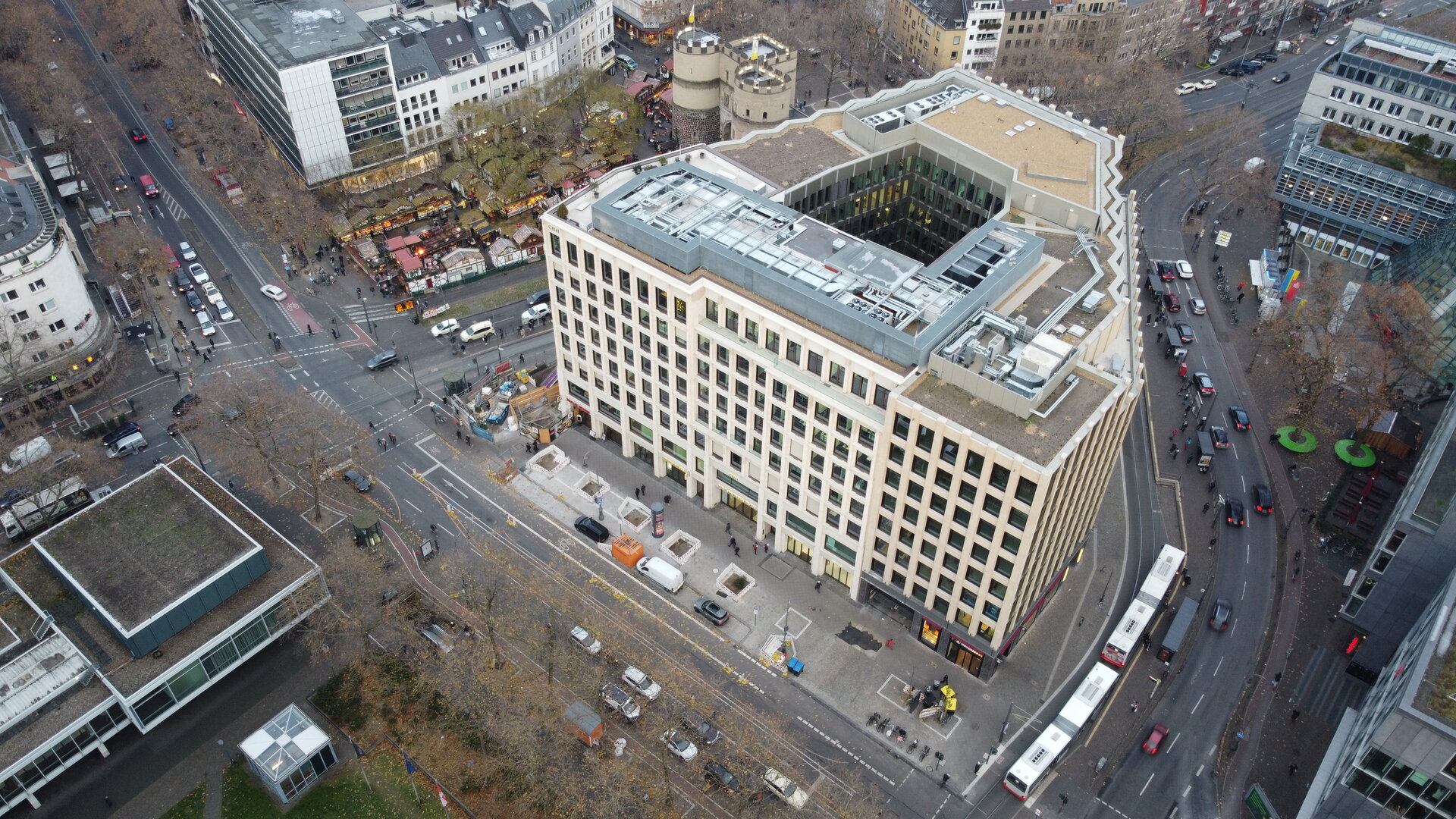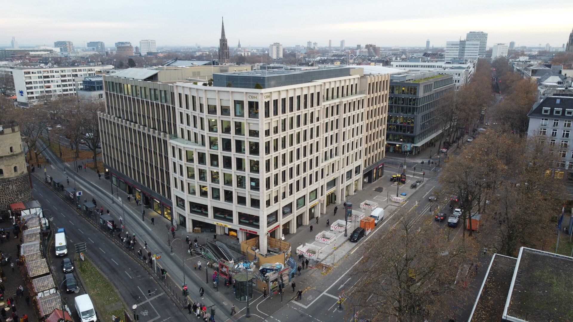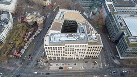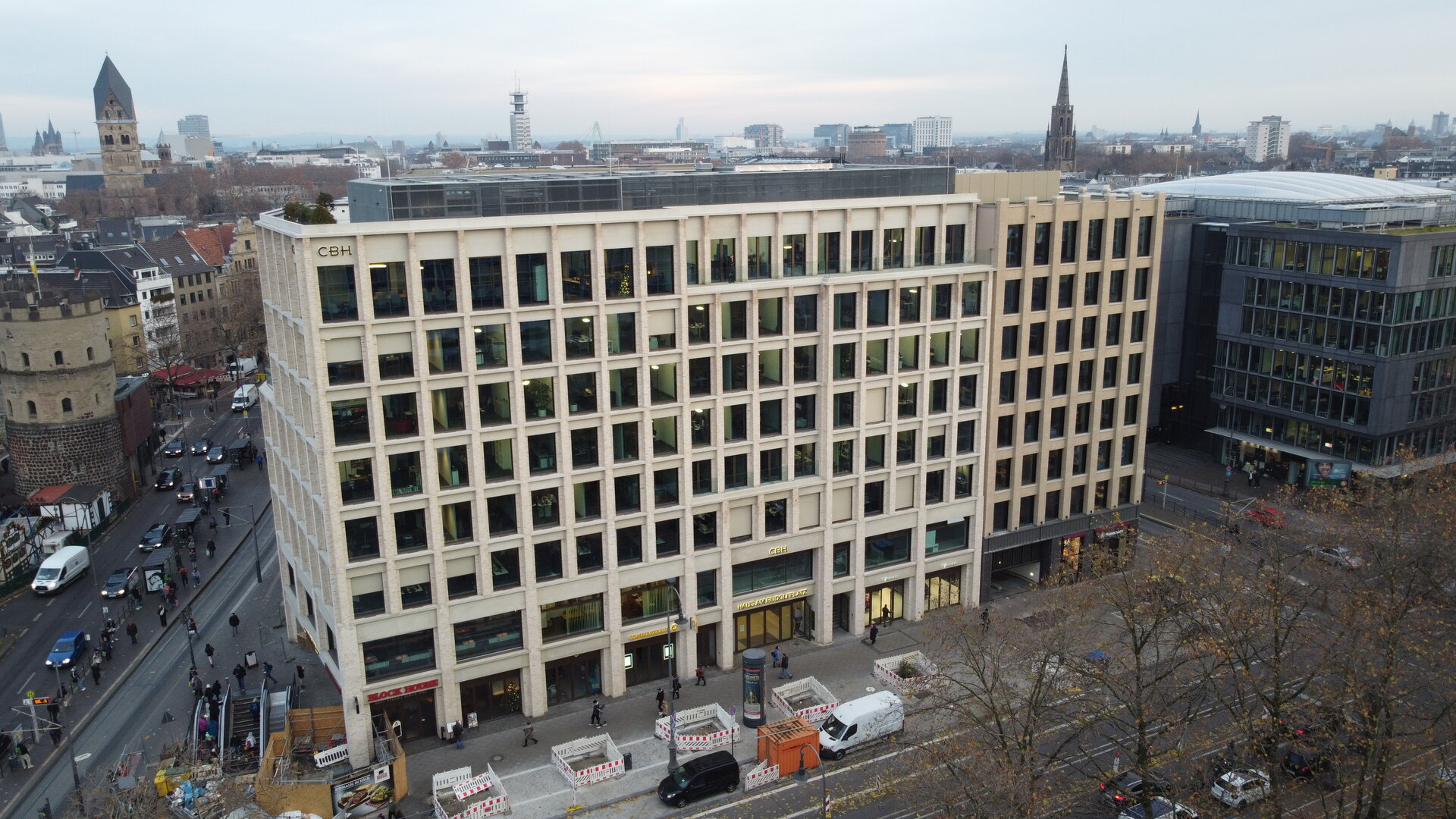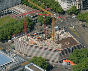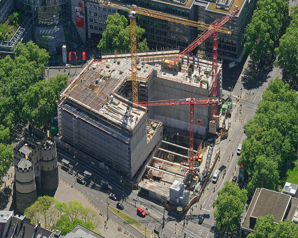 Im Herzen der Stadt Köln, am Rudolfplatz, erstellten wir den Rohbau für ein Büro- und Geschäftshaus mit 8 oberirdischen und drei unterirdischen Geschossen, inklusive Tiefgarage.
