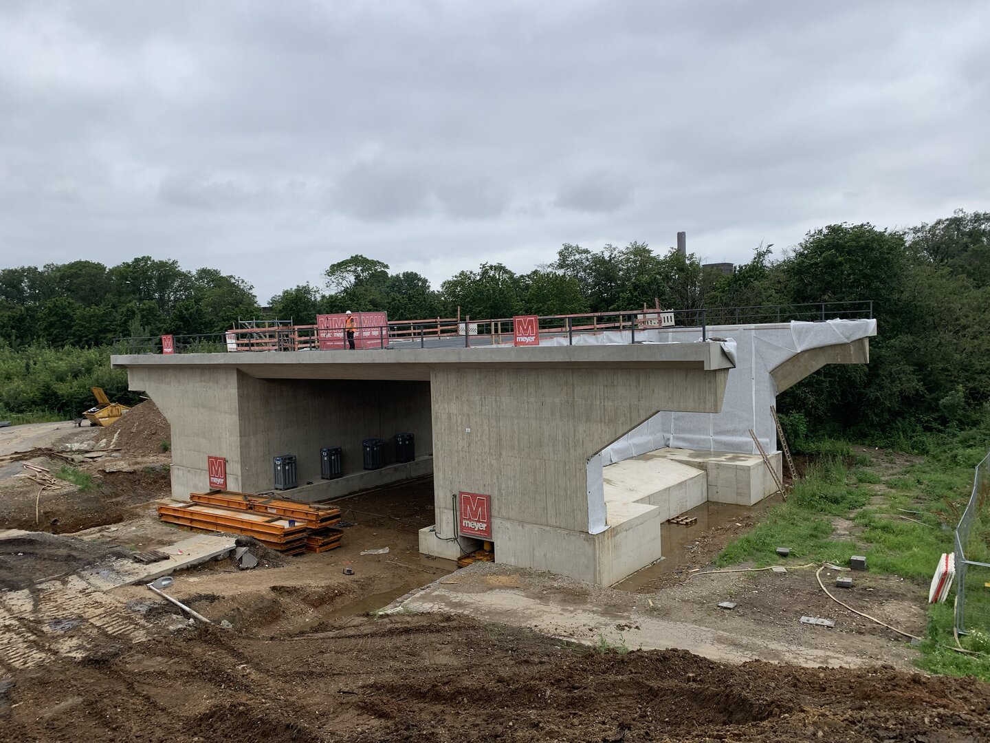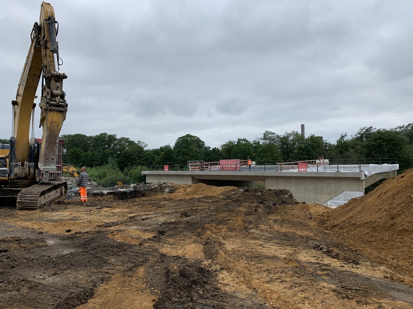 Das Ersatzbauwerk für das abzureißende Bestandsbauwerk wird westlich neben dem Fahrbahndamm der B 56 in der s.g. Ausgangslage hergestellt und während einer Vollsperrung der B 56, zum Abbruch des alten Brückenbauwerks, in seine Endlage verschoben.