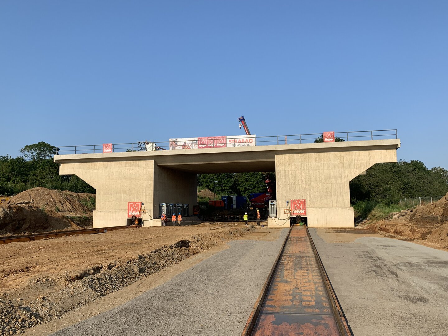 Das Gesamteinschubgewicht (einschl. Belag, Kappen und Geländer) des neuen Bauwerks beträgt ca. 3.600 t.