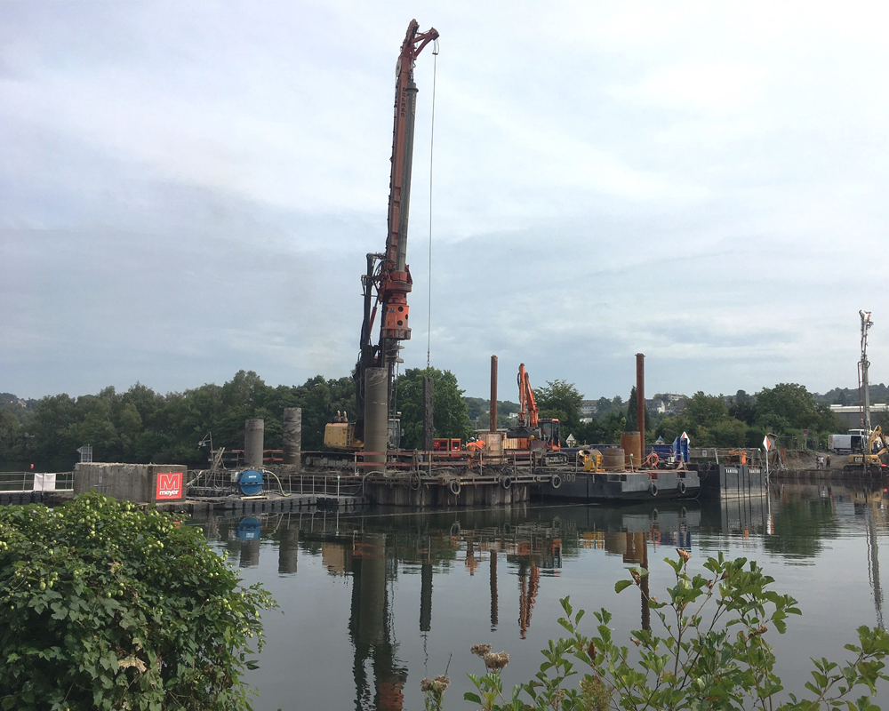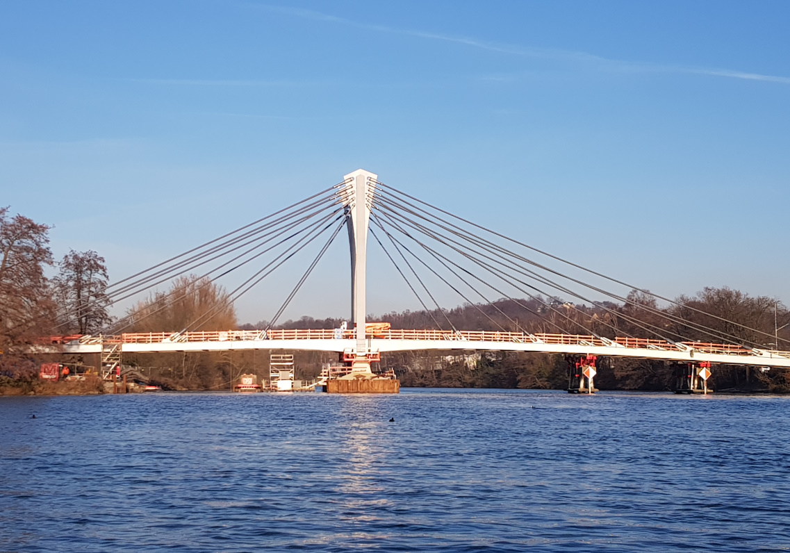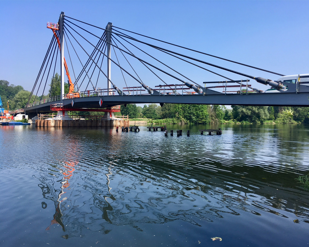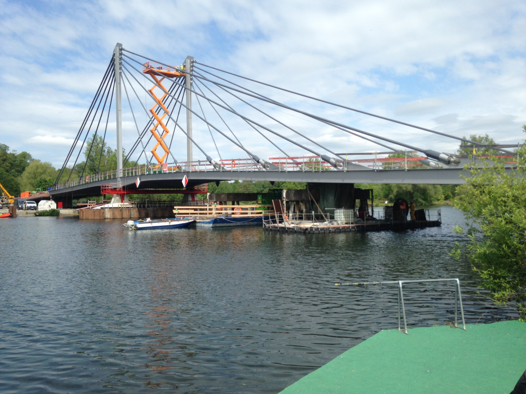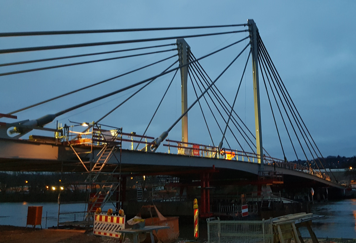 Der Neubau der Kampmannbrücke wurde als einhüftige, in sich selbst verankerte Schrägkabelbrücke mit Verbund-Fahrbahnplatte ausgeführt. Es ergibt sich ein Hauptfeld mit einer Spannweite von 68 m und ein Seitenfeld mit 45,2 m Spannweite.