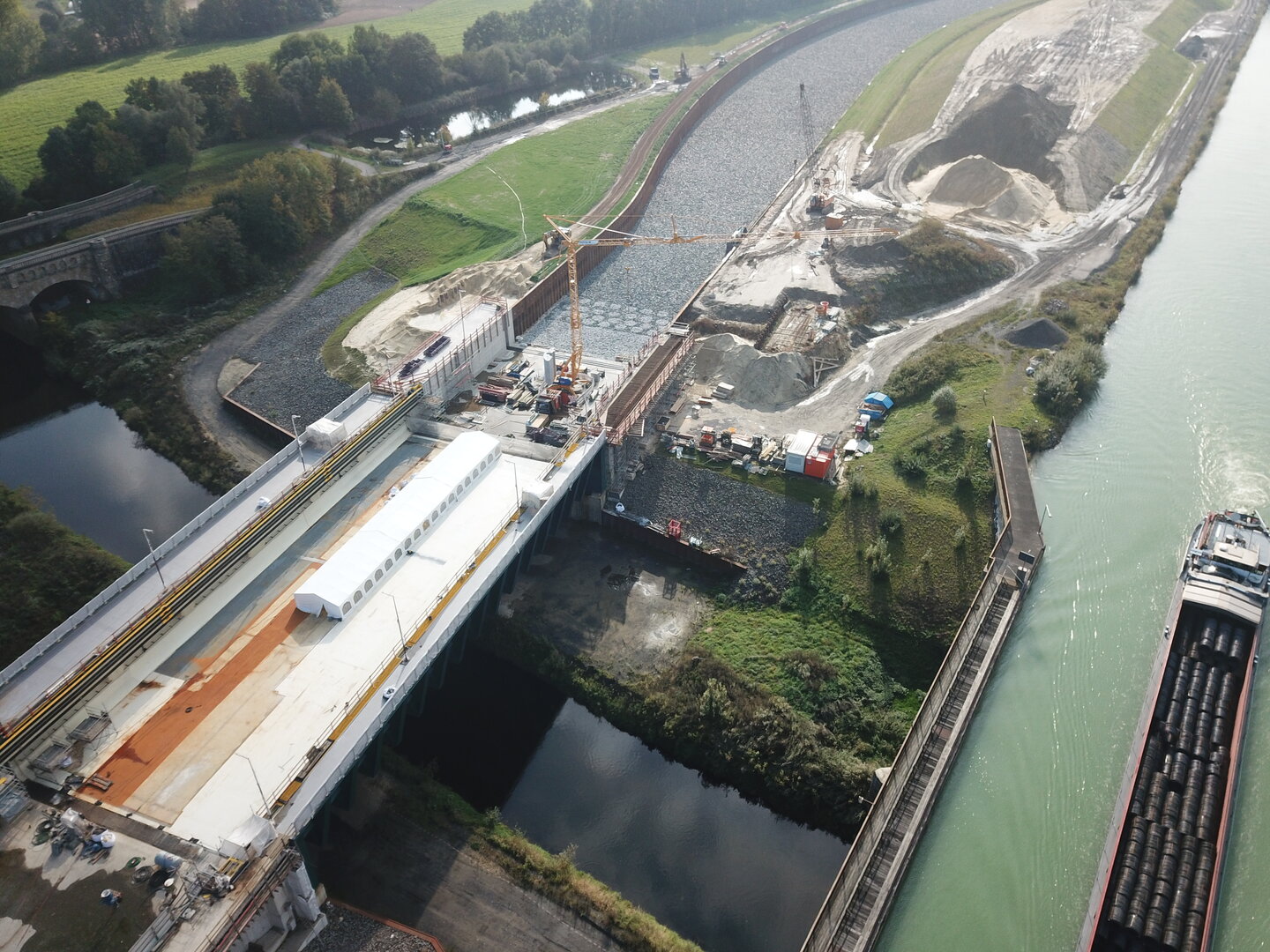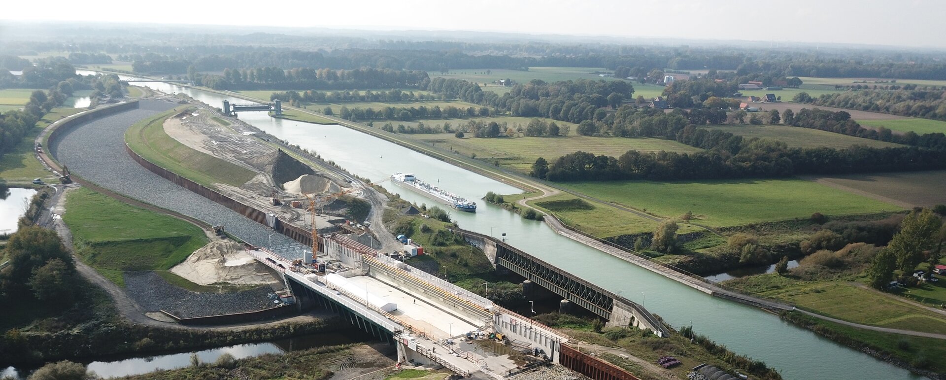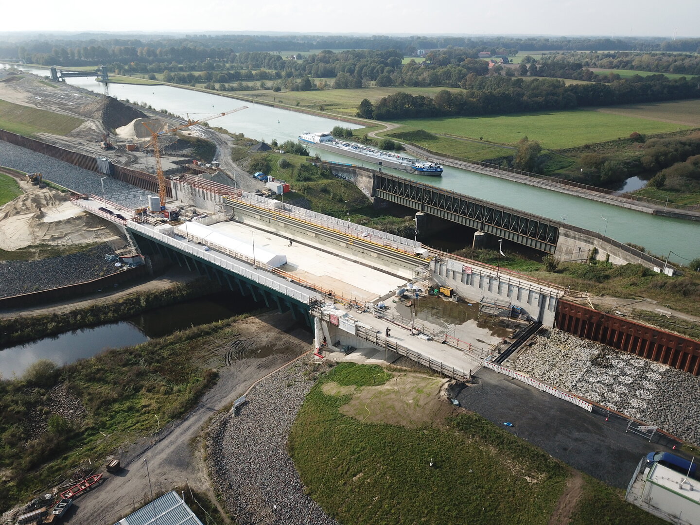 Die Kanalbrücke Ems überführt den Dortmund-Ems-Kanal über den Fluss Ems