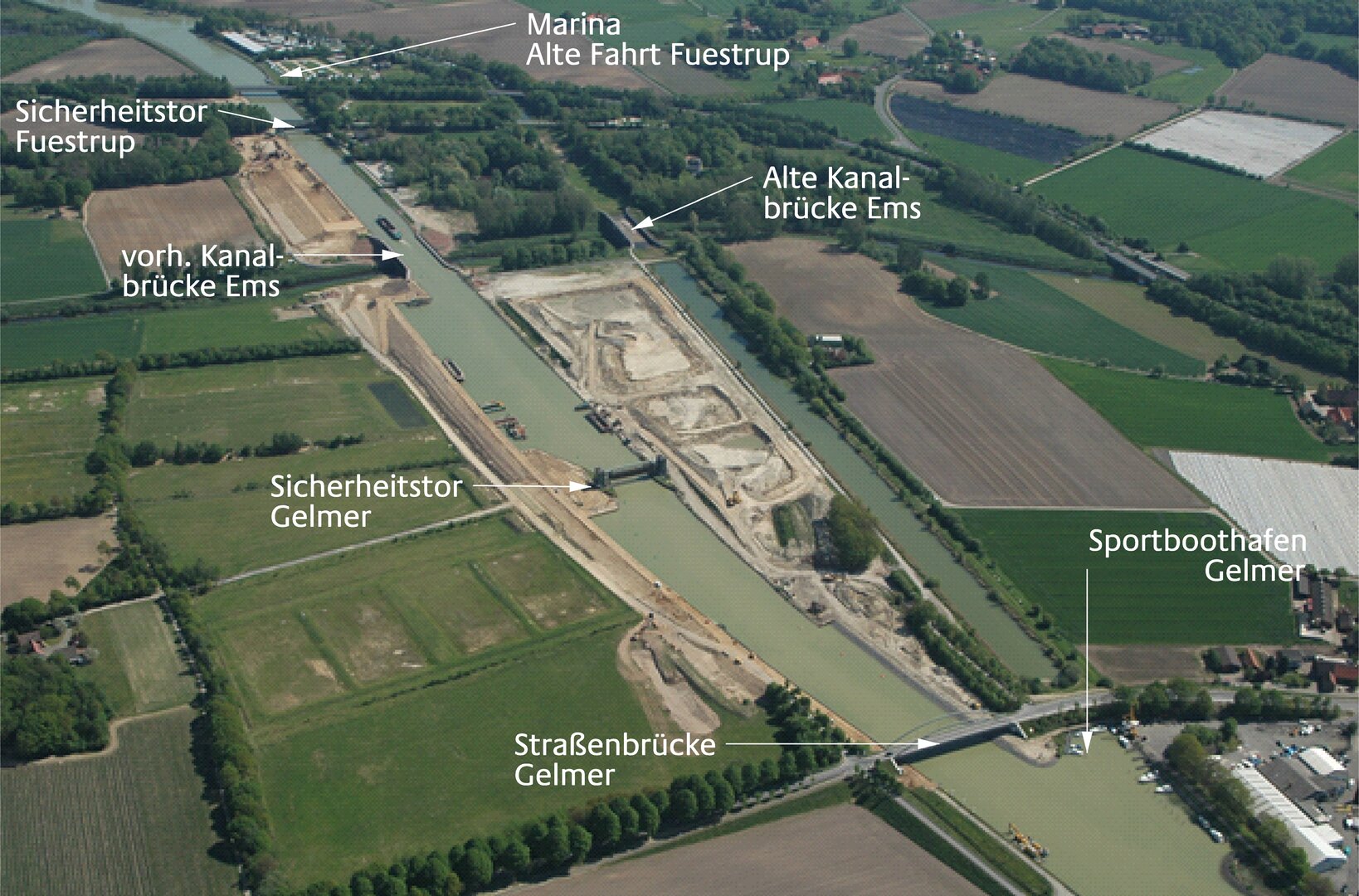 Zur Anpassung an den neuen Kanalquerschnitt musste die vorhandene Kanalbrücke Ems durch einen Neubau ersetzt werden. Die Betonbauwerke und Betonteile wurden gemäß ZTV-W wasserundurchlässig ausgebildet. Der Stahlüberbau der Kanalbrücke wurde als Einfeldträger mit rechteckigem Trogquerschnitt und einer Stützweite von 62,4 m ausgebildet. Die Auflagerung des Überbaus erfolgte auf Stahlbetonwiderlagern. Die Gründung der Stahlbetonwiderlager sowie die daran anschließenden Trogbauwerke wurden auf Bohrpfählen gegründet. Der komplette Stahlüberbau wurde mittels Längsverschubbahnen eingeschoben.