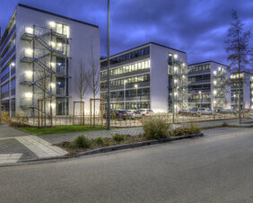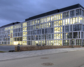 Im Erdgeschoss bis 4. Obergeschoss sind überwiegend Großraum-, Zellenbüros sowie einige Besprechungs- und Konferenzräume untergebracht. In der Eingangsebene befindet sich der zentrale Empfangsbereich.