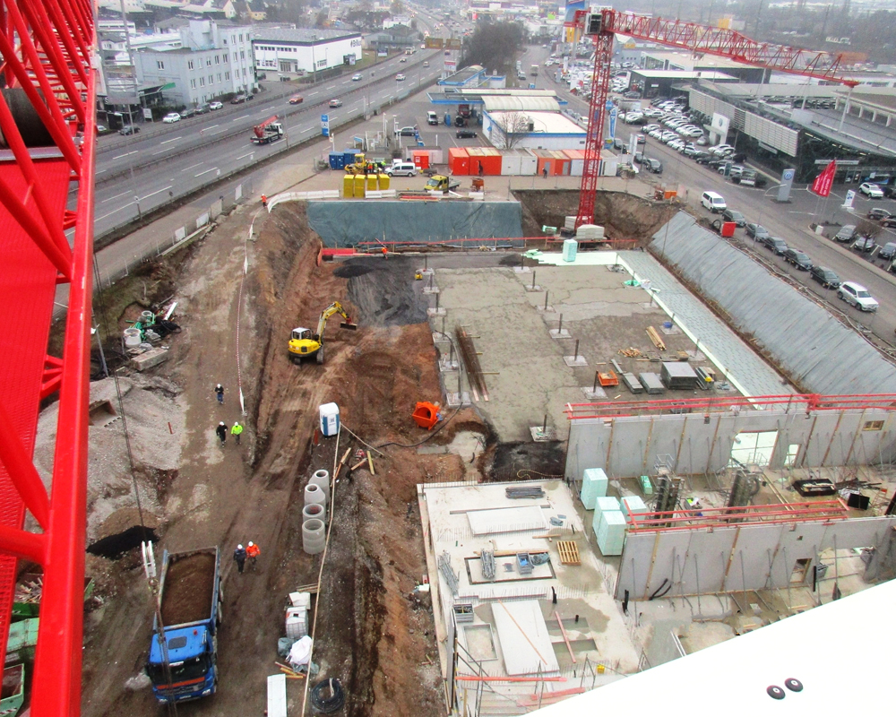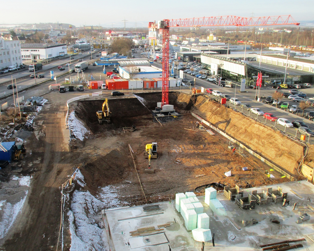 Das AUDI Zentrum besteht aus zwei Gebäudekomplexen. Das unterkellerte Ausstellungsgebäude mit den Abmessungen von ca. 86 x 40 m beinhaltet zudem die Werkstattflächen, Funktionsbereiche, Lagerflächen und Technikräume. Das ebenfalls unterkellerte Gebrauchtwagengebäude umfasst eine Fläche von ca. 49 x 43 m.