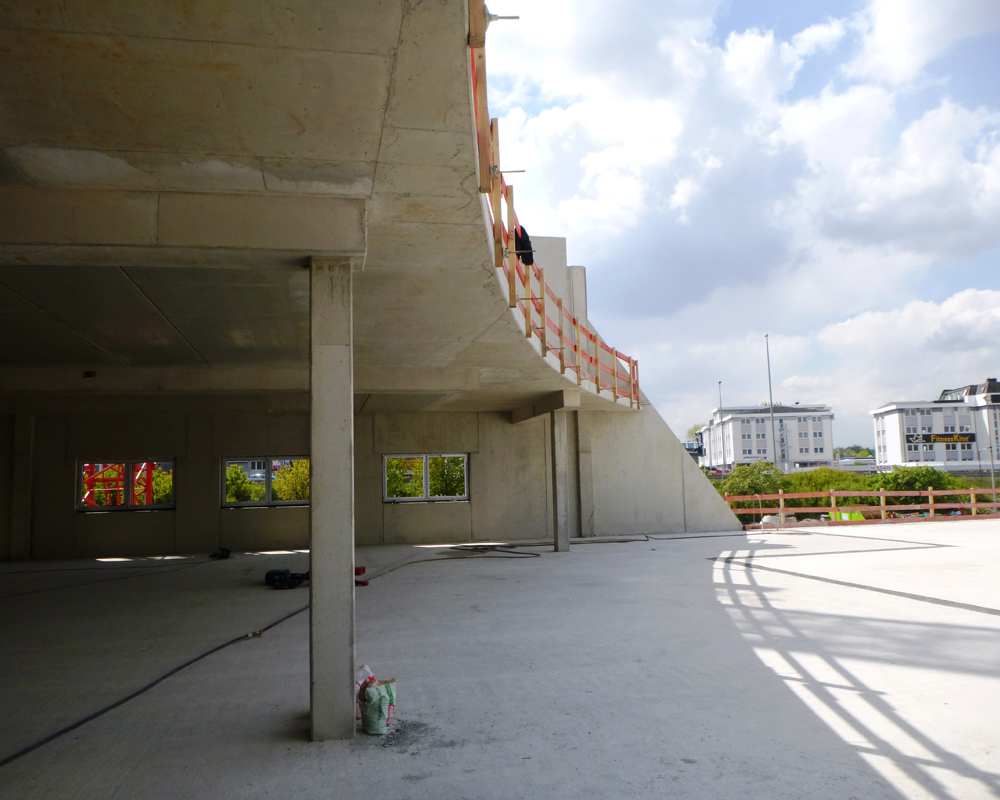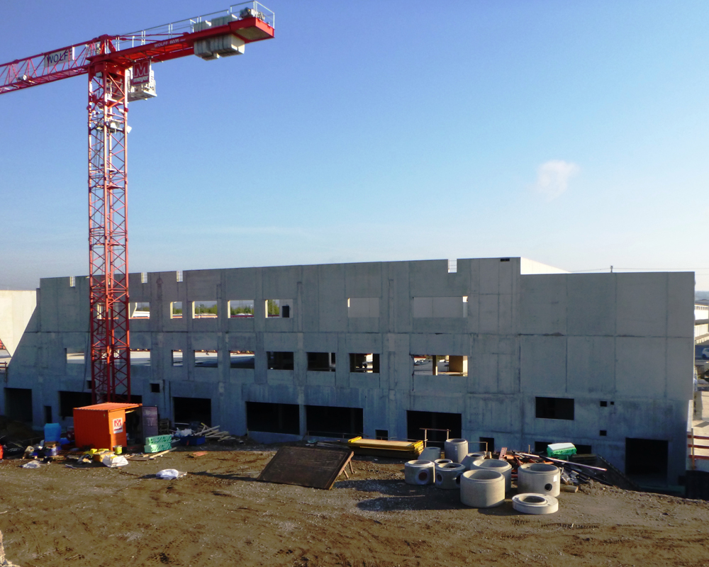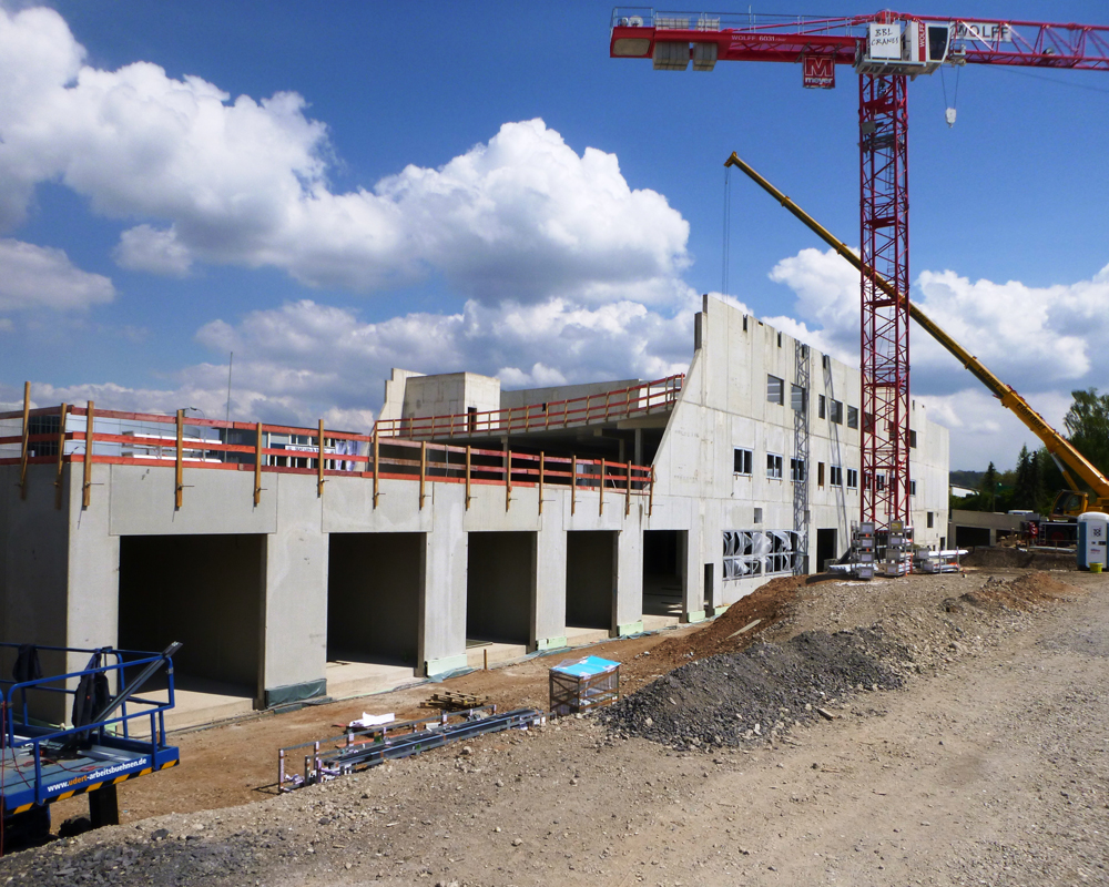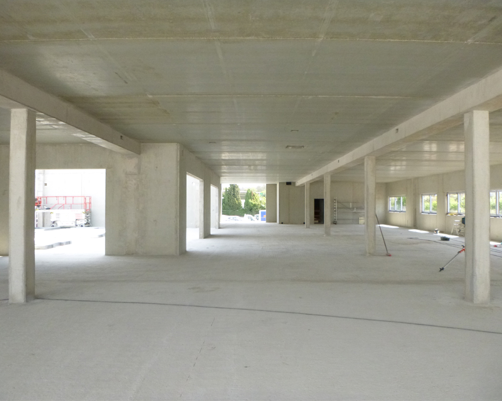 Beide Gebäudetragkonstruktionen wurden in Stahlbetonskelettbau mit Massivwandscheiben in Stahlbeton oder Mauerwerk hergestellt.