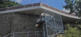 Beim Neubau einer rund 610 m langen Stützwand an der Dürener Straße in Gemünd (Eifel) handelt es sich um eine Stahlbetonkragkonstruktion, gegründet auf Großbohrpfählen und Mikropfählen sowie vor- und nachgelagerten Winkelstützkonstruktionen.