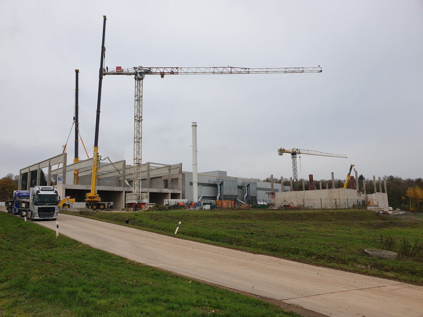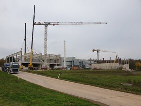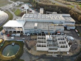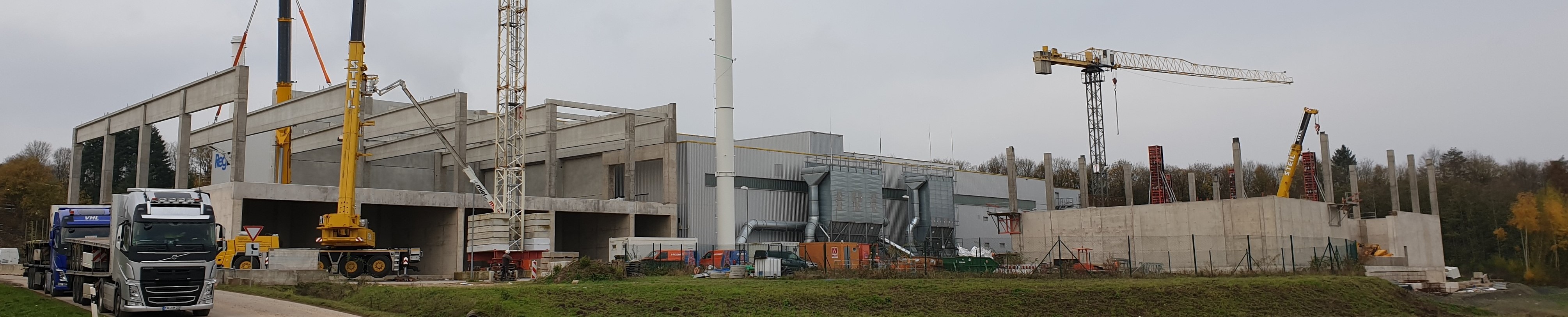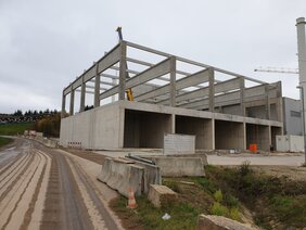 Dafür werden zur Erweiterung der Anlage 2 neue Hallen, Verladehalle und Lagerhalle aus einer Kombination von Stahlfassade Dach, mit einer Stahlbetonunterkonstruktion errichtet.