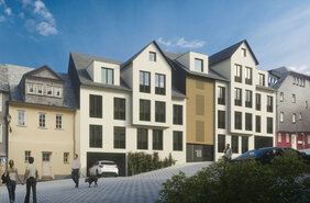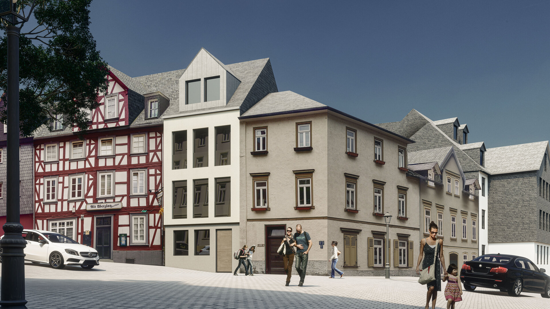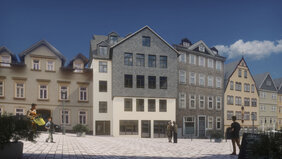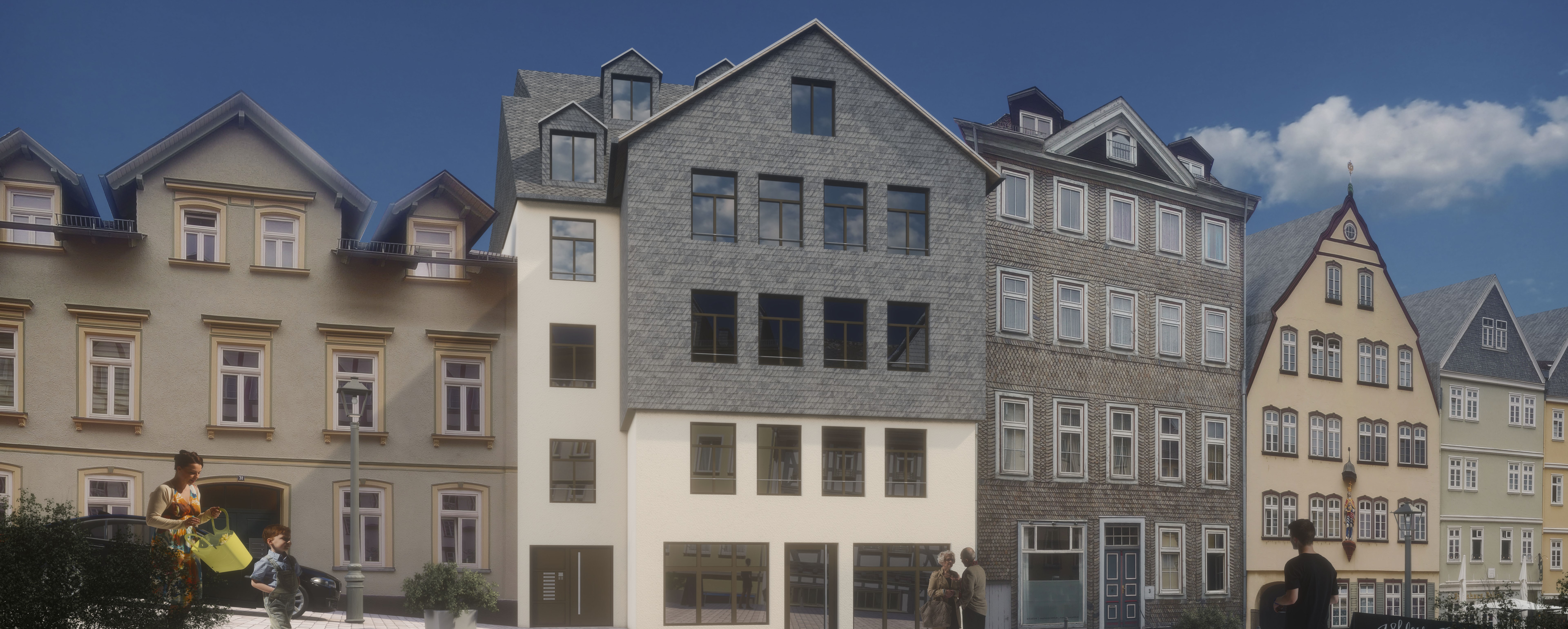 Bei der Gesamt-Baumaßnahme handelt es sich um eine Lückenbebauung mit drei Gebäuden und insgesamt 20 Wohneinheiten am Kornmarkt in Wetzlar.
