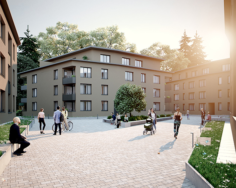 Die viergeschossigen Gebäude erhielten ein zurückgesetztes Staffelgeschoss und wurden nach den neusten Erkenntnissen nachhaltigen Bauens realisiert.