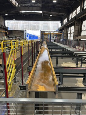 26 Stahlträger mit 40 Meter Länge (bisheriger Rekord bei Arcelor Mittal)
