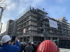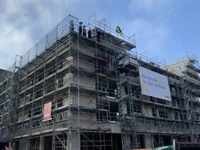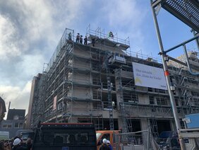 In der Fußgängerzone in Köln-Porz, auf dem ehemaligen Friedrich-Ebert-Platz, erstellen wir den Rohbau für den Neubau eines Mehrfamilienhauses mit Tiefgarage. Das Gebäude ist als U-Form in Massivbauweise, aus Stahlbeton und Mauerwerk erstellt.