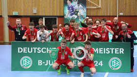 Wir gratulieren unserem IT-Azubi und der JSG Neitersen zum Sieg bei der Deutschen Futsal-Meisterschaft. Ein sensationeller Erfolg für die B-Junioren der JSG Neitersen – einmalig in der Geschichte des Fußballverbands Rheinland. Schon bei der Rheinland- und der Regionalmeisterschaft hatte die Mannschaft alle Spiele gewonnen. Das Endspiel wurde 4:2 gegen den FC Energie Cottbus gewonnen. Meyer Bau ist stolz Trikotsponsor der Mannschaft zu sein.